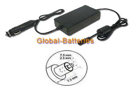An auto DC adapter has a cigarette lighter input plug on one end that is plugged into the cigarette lighter receptacle and on the other a special output connector that is plugged into the laptop's power receptacle. Although recent P4 laptops have higher and higher power requirements, auto batteries have the capacity to supply the necessary output for the PC.